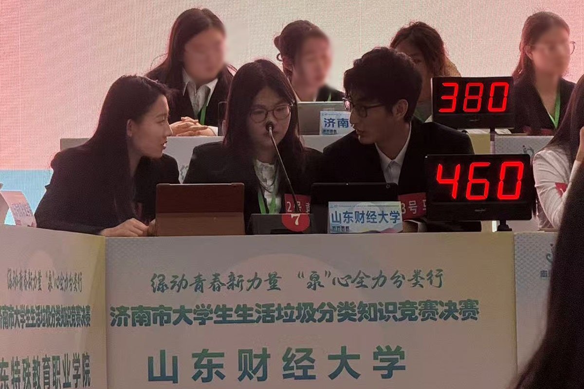 三位同学代表我校一路过关斩将,凭借深厚的知识沉淀、默契的团队协作以及出色的现场发挥,成功斩获“济南市大学生生活垃圾分类知识竞赛”一等奖。