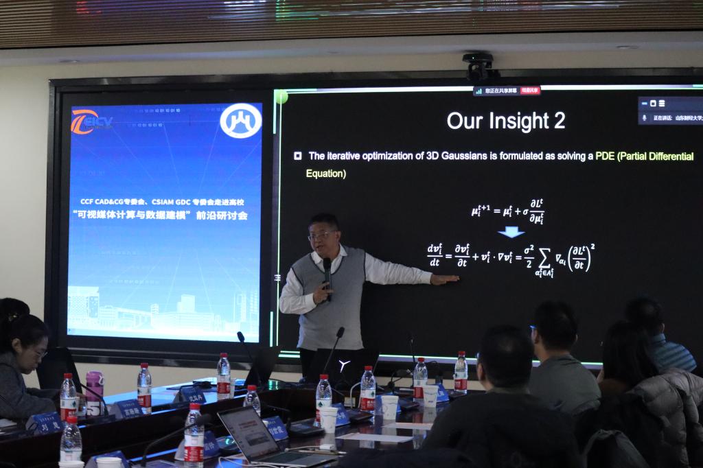刘利刚教授作了题为“多视点图像的3D重建与编辑”的引导报告,分享了其课题组近几年基于神经辐射场(NeRF)和3D Gaussian表达重建高质量3D场景的研究成果,以及如何对视点图像进行保持3D一致性的编辑,为未来CAD系统的智能化发展提供了新的方向。