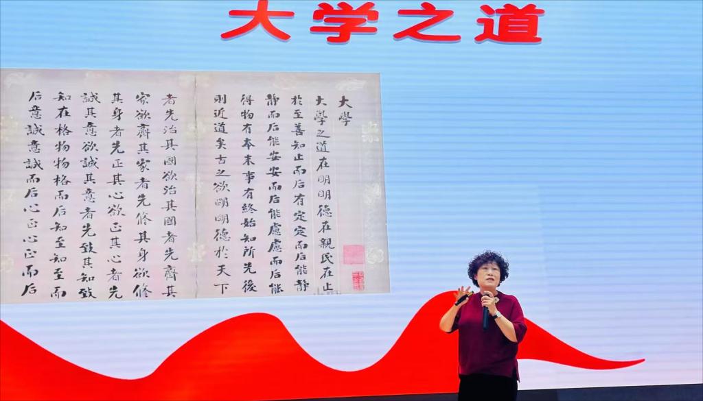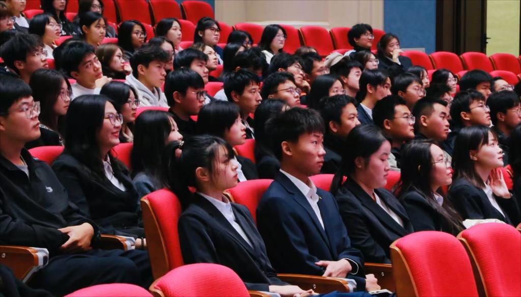 她带领师生透过讲述方志敏等一系列鲜活的案例,回顾中国共产党建设过程中取得的来之不易的成绩,解读了“大学之道”中蕴含的哲学道理,深入浅出地分析了清廉自律对个人、家庭乃至社会产生的深远意义。她强调,廉洁不仅是一种道德要求,更是一种法律责任,广大青年学生干部要时刻保持清醒头脑,坚决抵制各种诱惑,做到心有所畏、言有所戒、行有所止。作为新时代大学生,尤其是学生干部,应将廉洁理念内化于心、外化于行,让清风正气成为青年一代最鲜明的底色,将廉洁教育扎根到学生的日常言行之中。为此,她希望与会学生做有信仰、讲政治、正能量、有情怀、讲格局、讲奉献、具有引领力的新时代优秀大学生,在自己的岗位上持续发光发热,通过提升理论和参加实践修炼七种“人生境界”——做有爱的人、做爱学习的人、做有品尚美的人、做有激情的人、做有态度的人、做有智慧的人、做乐观的人。