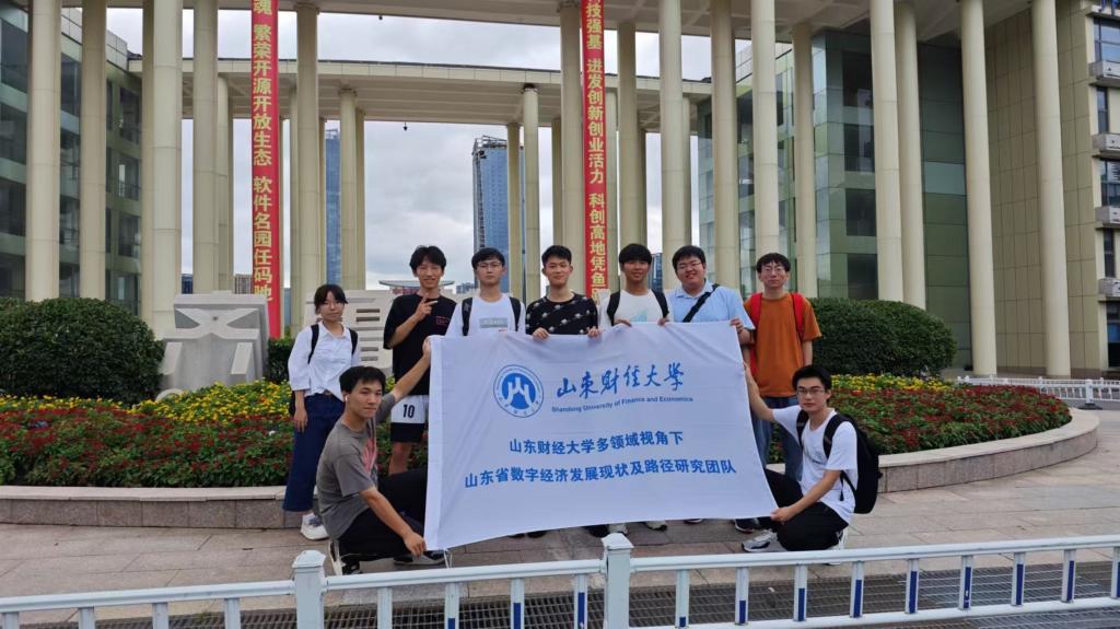计算机科学与技术专业吕治科为代表的几名同学的呼吁下,成立了由49人组成的多领域视角下山东省数字经济发展现状及路径研究团队。在指导老师韩慧健、李云枝的指导下,团队设立多个分队,分别针对科技智能、快销品、新能源、金融、生物医药等行业,以及以 “济南市一网通办” 为典型代表的数字治理领域展开了全面而深入的实地调研。