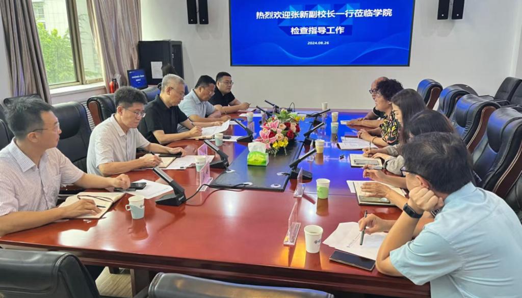 杨春丽对张新一行的到来表示热烈欢迎,并汇报了学院开学准备工作、暑期重点工作开展情况及下一步工作计划。她表示,学院将深入贯彻学校第二次党代会精神,在前期工作开展良好的基础上,对标“一院一书”细化任务,压实责任,高质量高标准完成学院2024年度教育改革创新指标任务。