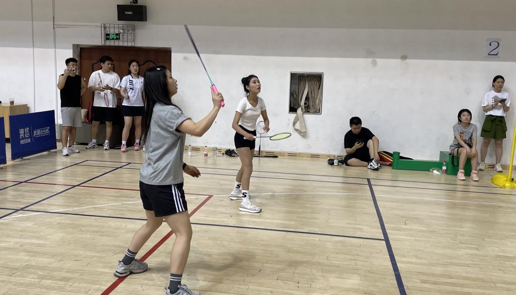 研究生会主办,面向全体研究生同学,其中比赛分为男双、女双、混双三个项目,两两对战,决出胜负。通过前期的宣传,学院共有九名同学报名参赛。比赛当日,参赛选手早早来到场馆进行赛前热身准备,裁判向参赛选手介绍了羽毛球双打比赛规则。随后,通过赛前领队抽签分组,进行小组循环赛,出线的队伍则进行淘汰赛,全校共有十八支队伍,一百多名学生参与了本次比赛。
