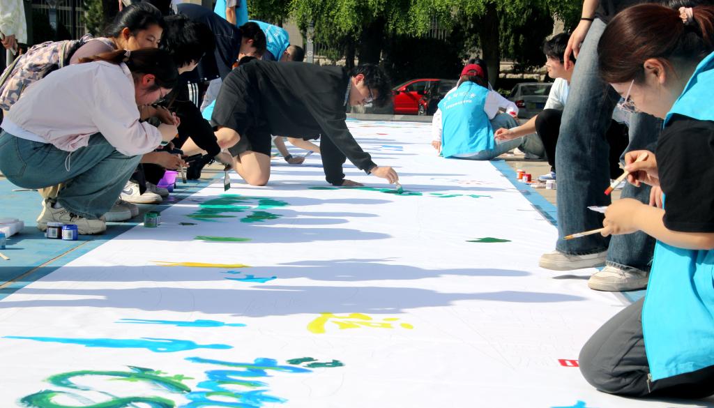在第75个五四中国青年节来临之际,4月26日下午15时,学院组织学院师生在燕山校区喷泉广场开展了一场别开生面、色彩纷呈的“绘梦五四·共筑青春巨画”活动。