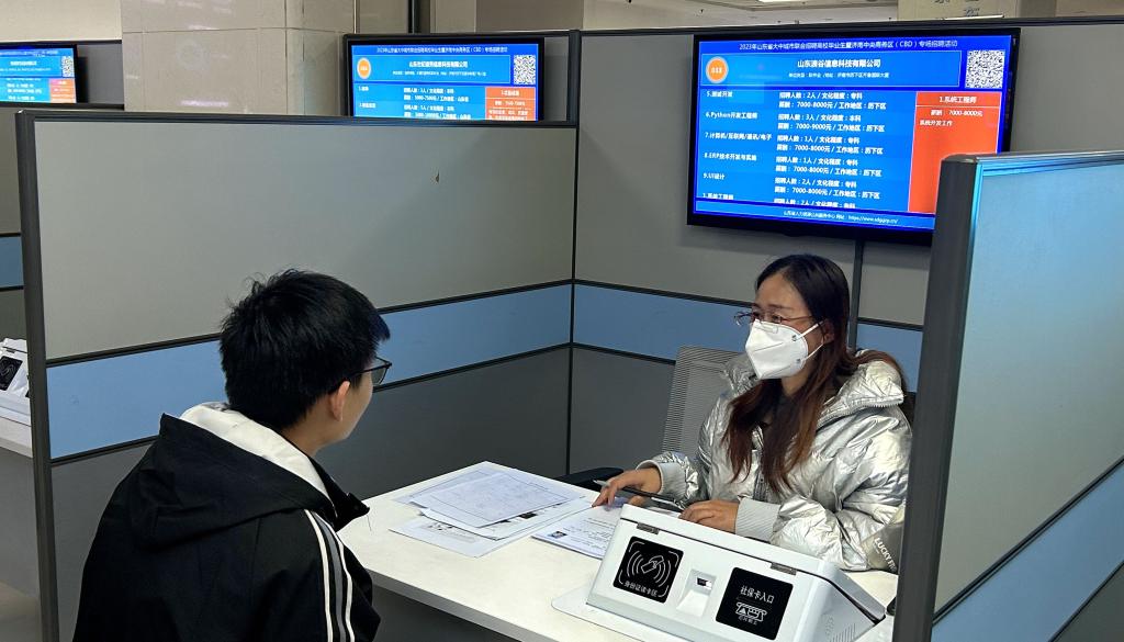 学生随学校参加了2023年山东省大中城市联合招聘高校毕业生暨济南中央商务区(CBD)专场招聘活动。