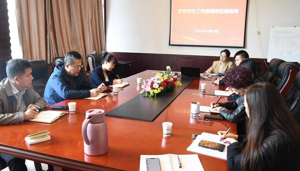 10月13日上午,党委学生工作部(处)部长杨哲、副部长张贞梅、刘思锋一行三人来学院调研座谈,学院党委书记杨春丽、党委副书记吕海霞、李云枝和全体辅导员参加座谈。