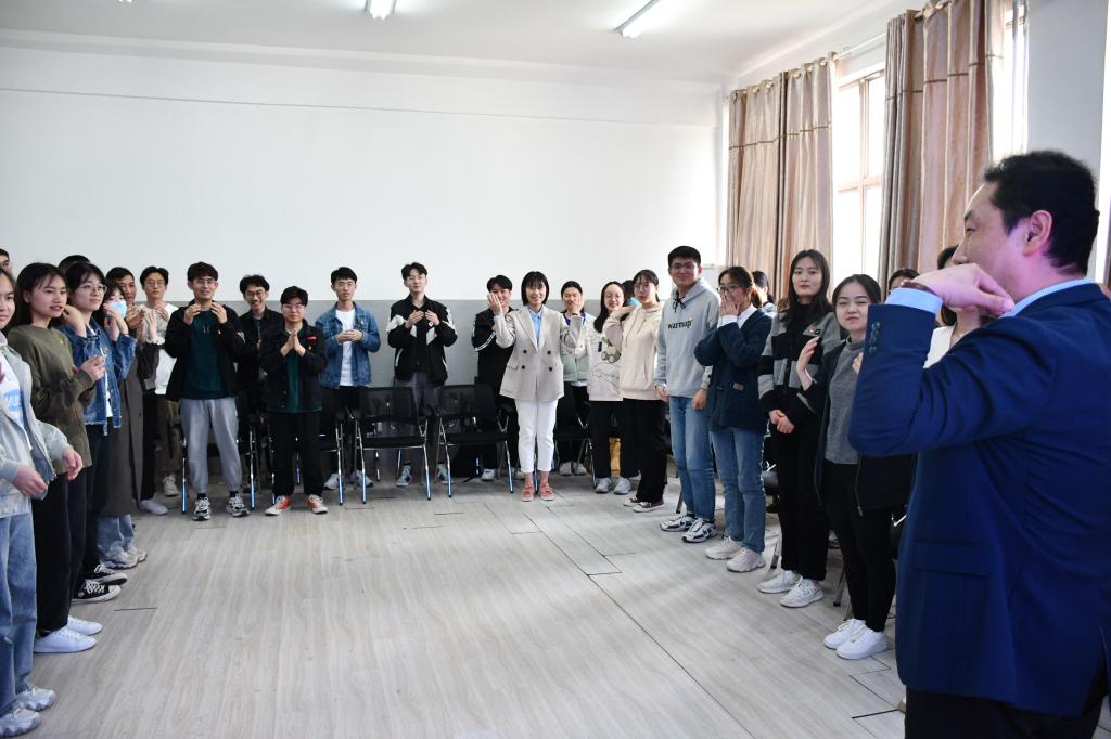4月15日下午,学院特邀校党委组织部副处级组织员刘洪涛,为学院学生党员带来了一场沉浸式的表达性团体党课。学院党委副书记吕海霞主持,40余名学生党员和教师代表参与了本次党课学习。