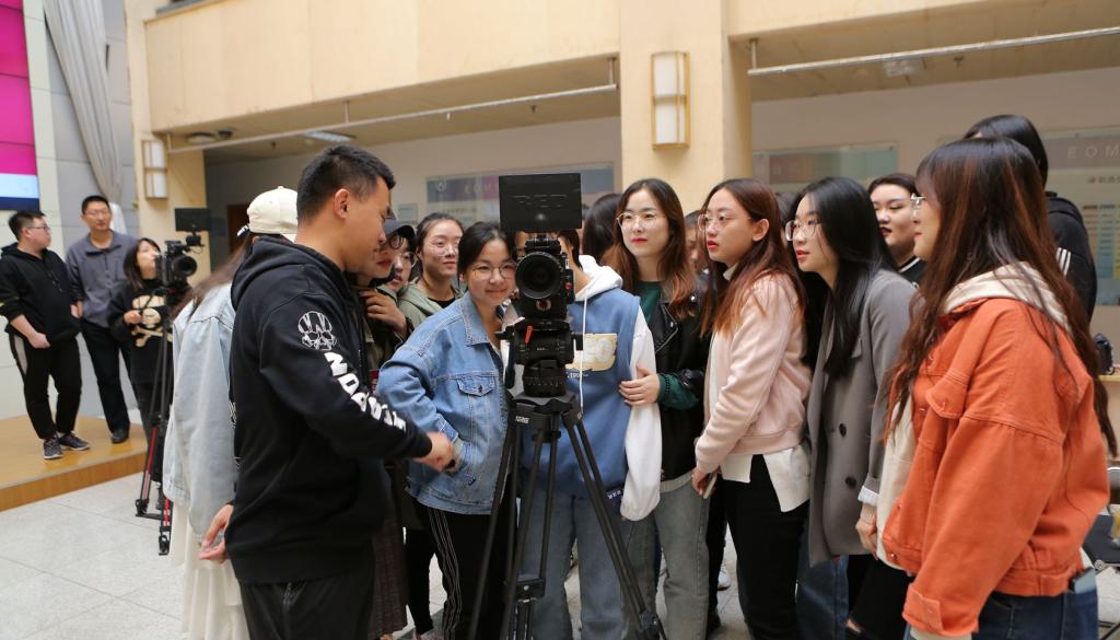 ”活动。本次活动依托姚保法老师的《数字媒体后期制作》课程,他通过将高端电影设备引进校园,让同学们近距离领会了8k摄影机的先进技术,更让同学们亲手操作实践,在实践中巩固了所学知识。