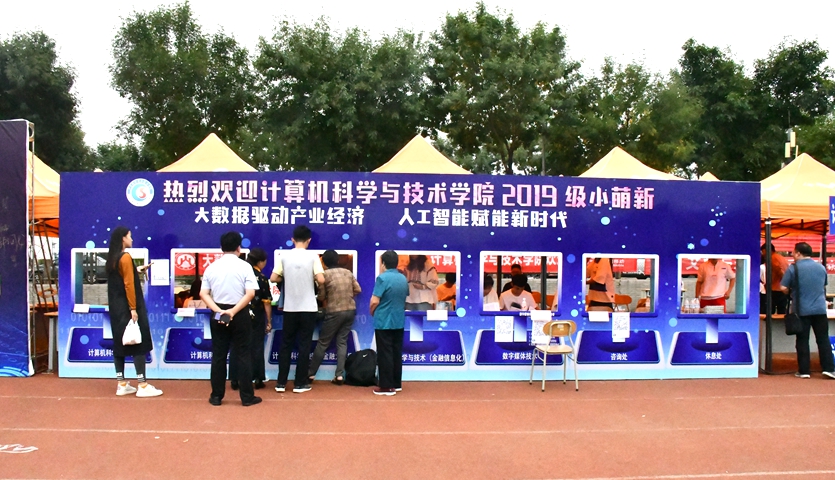 计算机学科特色,迎新现场精心设计了印有专业名称和专业优势的计算机电脑屏幕展板作为迎新窗口,使其成为迎新现场最为亮丽的一道风景。同时,智能机器人作为杏吧原创