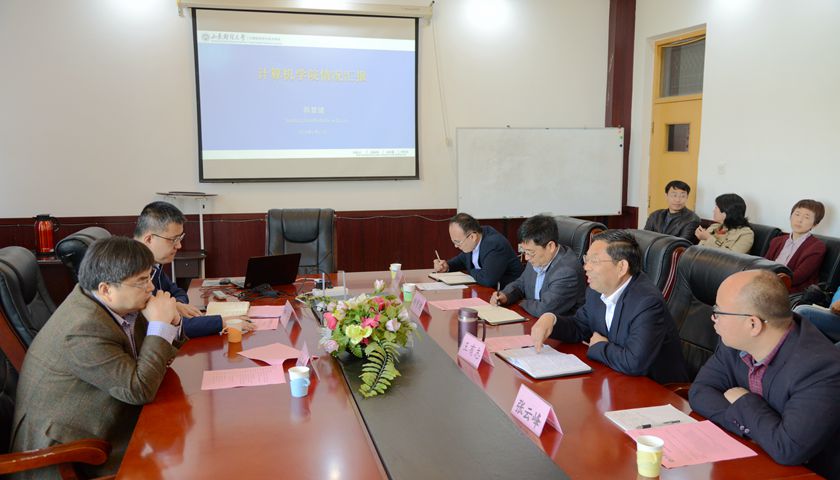 学院党委书记王有志就和谐学院建设、教育思想大讨论情况做了汇报;执行院长韩慧健汇报了学院发展历史、学院现状以及学院启动的“新IT卓越人才培养计划”,介绍了学科与专业发展规划和今后的“财经智能”特色发展思路,分析了学院工程教育认证和学科支撑与提升面临的问题;刘慧教授代表“山东省高校优秀科研创新团队”汇报了团队15年的发展历程和发展现状,还代表研究平台汇报了山东省数字媒体技术重点实验室的建设情况;崔超然教授代表“山东省优势学科人才培育团队”汇报了团队建设和财经特色发展情况。