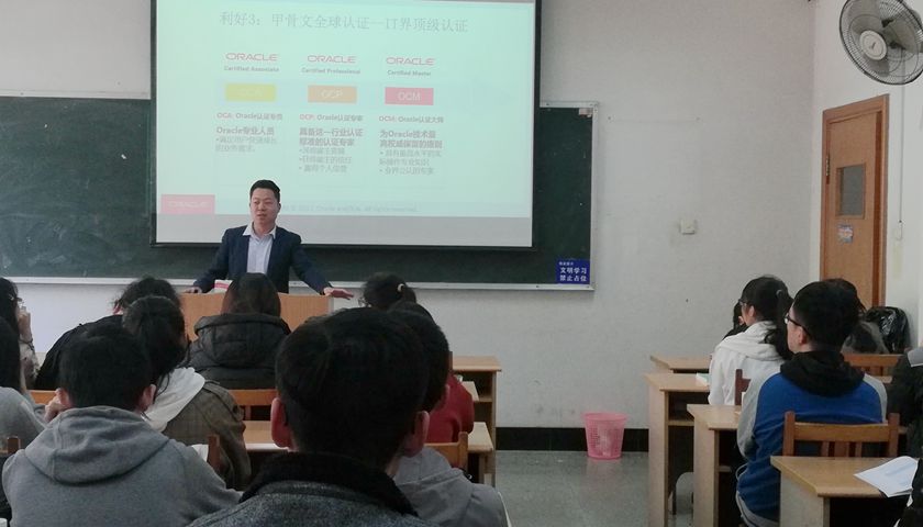 在燕山校区举办了互联网行业就业交流会。本次交流会特邀甲骨文公司工作人员汪洋作为主讲人,电子商务1602班全体同学参加了本次交流会。