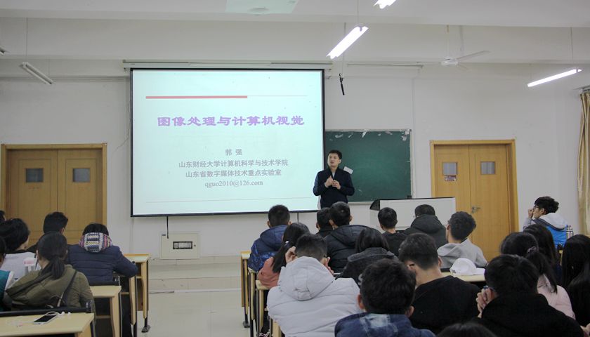 讲座接近尾声,郭强就讲座中涉及的问题与同学们进行了答疑和交流。图像处理与计算机视觉在现如今已经受到社会热烈追捧,在语音识别、人脸识别、自然语言处理、信息检索、目标检测等多方面都有一定的新发展,与此同时,对于专业化人才的社会需求量也越来越高。因此,郭强鼓励同学们学好计算机专业必须在数学与编程上下苦功夫,不断开阔自己的思维视野。只有如此才能适合社会需求,实现更大的社会价值。