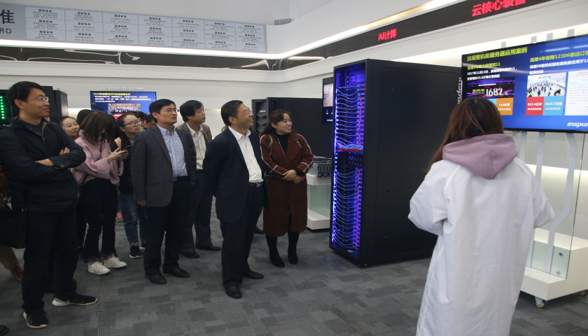 广大党员结合实物详细介绍了企业自主研发的高端服务器和大数据、政务云、智慧城市等信息化平台。随后在生产车间察看高端服务器装配生产线的过程中,听取了企业运用“互联网+”理念打造智能工厂、提高产品质量和生产效率、弘扬“工匠精神”、提高企业竞争力等方面的详细介绍。