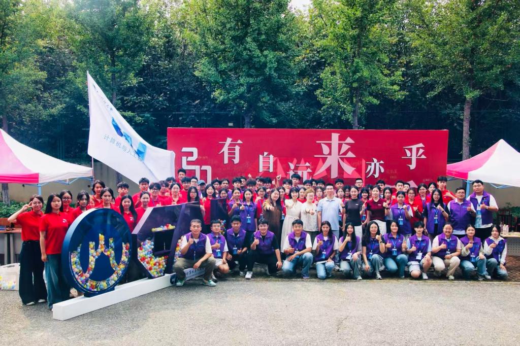 精心打造的“有朋自远方来不亦乐乎”主题签名墙成为迎新现场的“打卡热点”。新生们纷纷驻足签名,来自山东高唐的本科生王艺霏笑着说:“签下名字的瞬间,真切感受到自己成为了学院的一员,特别有归属感。”值得一提的是,今年新生中共有三位同名同姓的“王艺霏”,其余两名分别来自河南巩义和河南林州,三人在签名墙前合影留念,成为现场一段温馨趣事。