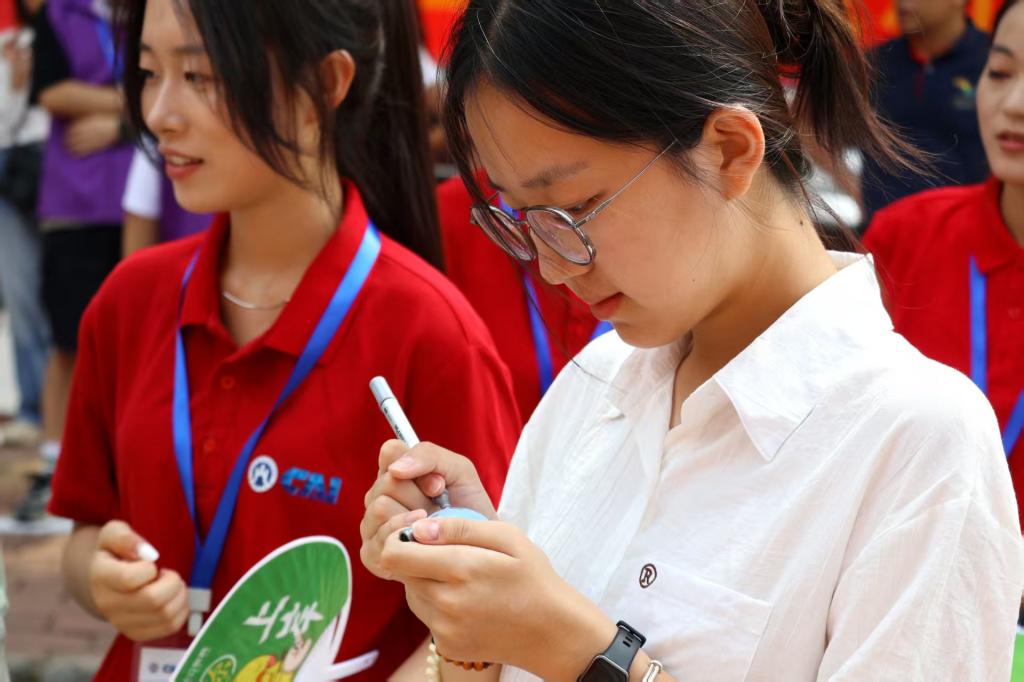 “心愿彩球”处同样人气爆棚。新生们将写满“心愿”的彩球投入印有学院“CAI”标识的透明展示柜中。这些承载着梦想的小球将被学院珍藏,成为新生大学时光的“初心”纪念。