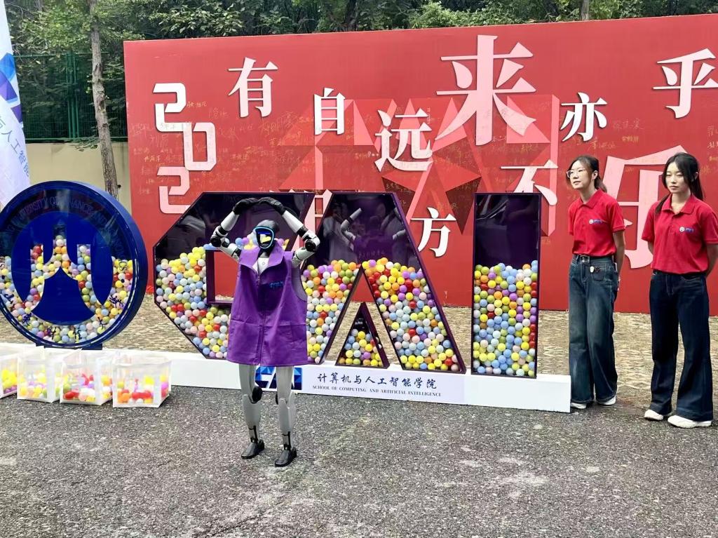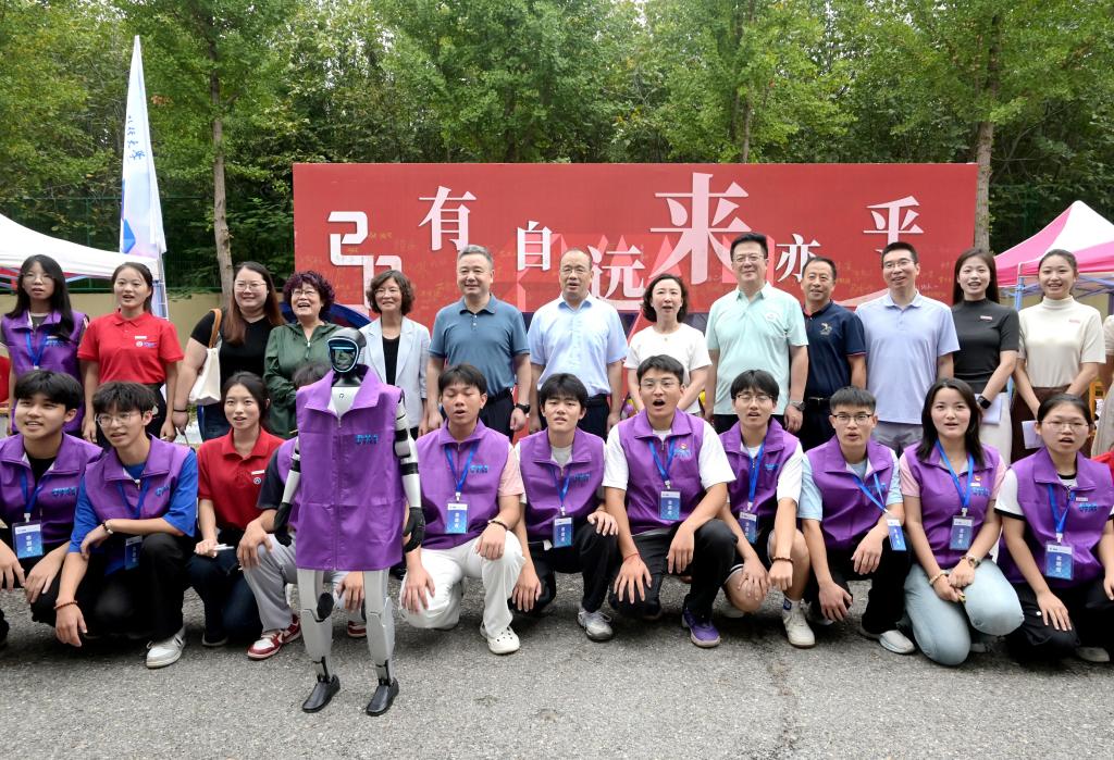 迎新现场最吸引眼球的当属“人机互动”环节。人型机器人热情地与新生及其家长打招呼、握手,通过人脸识别、语音交互等功能实现“跳舞”“赛跑”等动作展示,让大家直观感受科技发展的神奇魅力。