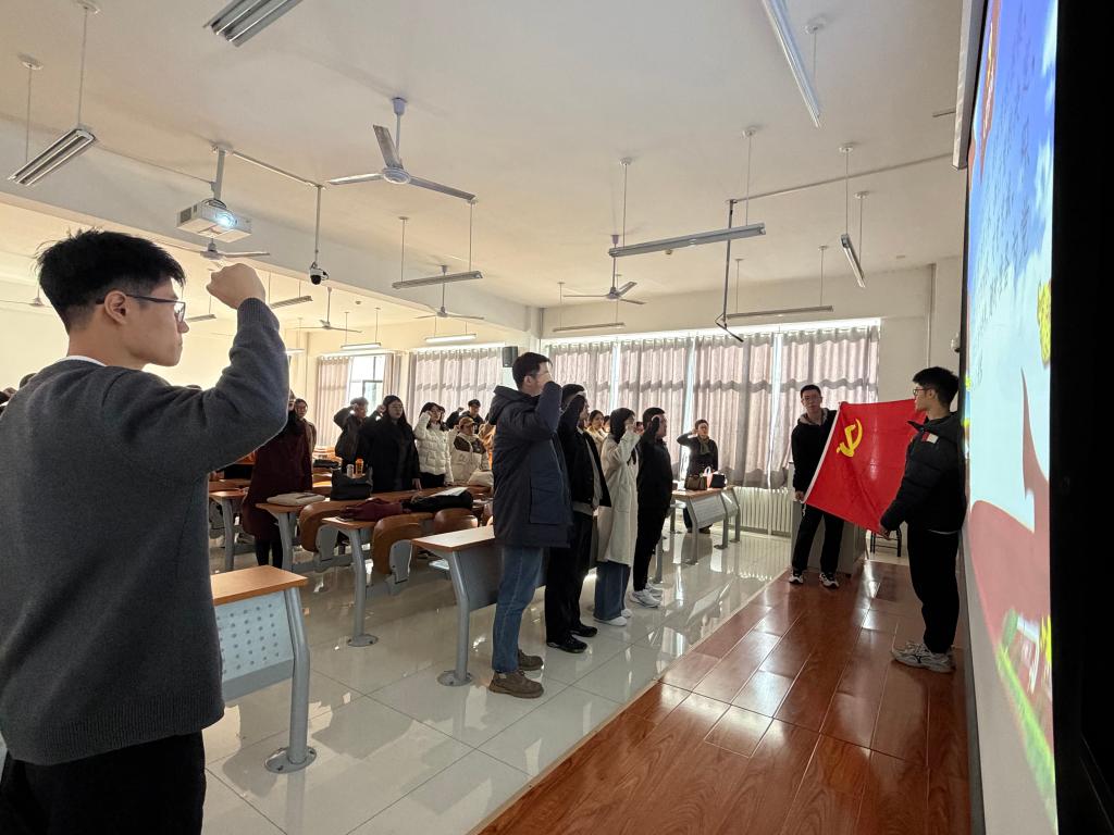 支部书记刘慧对全体党员在理论学习、党性修养、学习实践、服务社会等方面提出了具体要求,希望大家积极发挥模范带头作用,不忘初心,勇担使命,为学院高质量发展做出积极贡献;全体党员面向党旗进行了庄严宣誓,表达了为共产主义奋斗终身的坚定决心。
