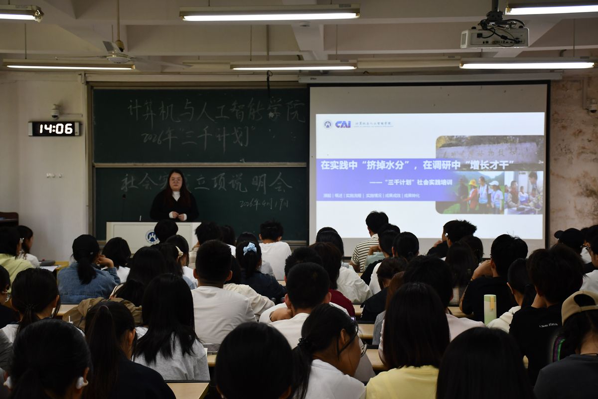2026年“三千计划”社会实践启动仪式暨立项说明会在章丘校区顺利举办。团委书记李晨露,团委实践委员、辅导员刘孝雨,三位优秀实践团队队长参加活动,2026年“三千计划”社会实践项目团队队长,2024级、2025级各班学生代表参加活动。