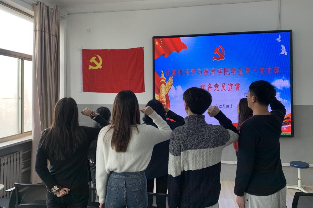 2020年12月10日,学院各学生党支部在举办完预备党员接收大会后,分别组织了神圣而庄严的入党宣誓仪式,本次新接收的预备党员与老党员一起参加。