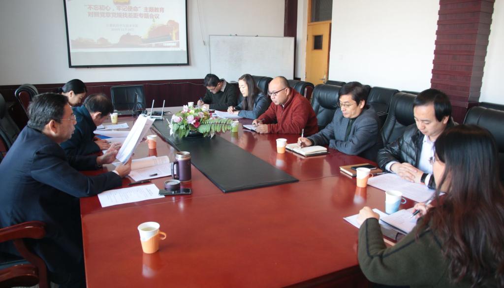 在燕山校区1号教学楼1406会议室召开对照党章党规找差距专题会议。学校主题教育第三巡回指导组组长、工会主席蒋继升一行及学院党委领导班子成员参加会议。会议由学院党委书记王有志主持,学院执行院长韩慧健、教师代表张锐列席。