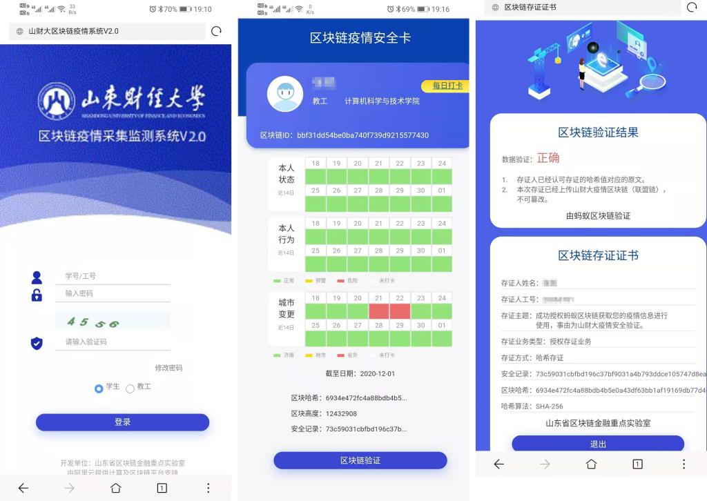 计算机科学与技术学院、山东省区块链金融重点实验室、阿里云、山东省立医院等技术力量协同研发部署。系统上线后,学校迅速通过微信公众号、企业微信以及学校杏吧原创公告